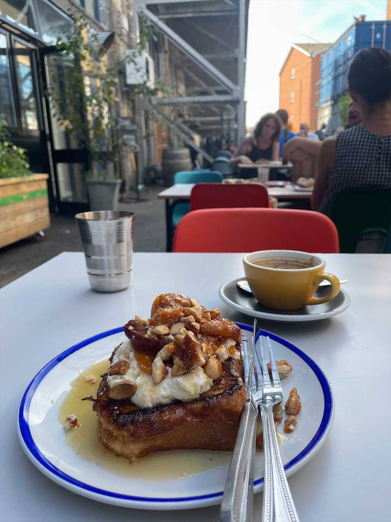 Geniale Bäckerei in den S-Bahn Bögen bei London Fields. Netter, improvisierter Hinterhof Gastgarten und extrem leckeres Frühstück. https://e5bakehouse.com/