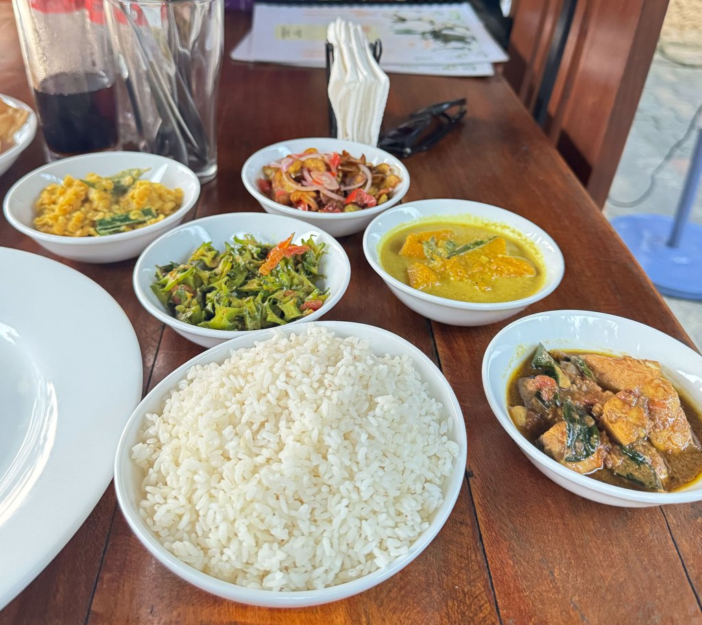 Apropos gutes Essen: ich hatte ja von der Sri Lankischen Küche vor meiner Reise relativ wenig Ahnung. Aber ich freute mich schon auf die legendären gewürzreichen Currys von denen mir einige Bekannte schon berichtet hatten. Und die haben es wirklich in sich: Chili, Kurkuma, Zimt, Pfeffer – die ikonischen Gewürze fehlen in fast keinem Gericht. Dementsprechend scharf sind viele der typischen Speisen. Wenn man sich durchkosten will, sollte man also nicht allzu zimperlich sein. Selbst zum Frühstück wird oft schon (mittel-)scharfes Dal oder Curry serviert. Etwas gewöhnungsbedürftig, aber lecker! Ich bin mittlerweile Rice & Curry-süchtig und auch Schärfe-technisch zum Glück einigermaßen abgehärtet. 😉